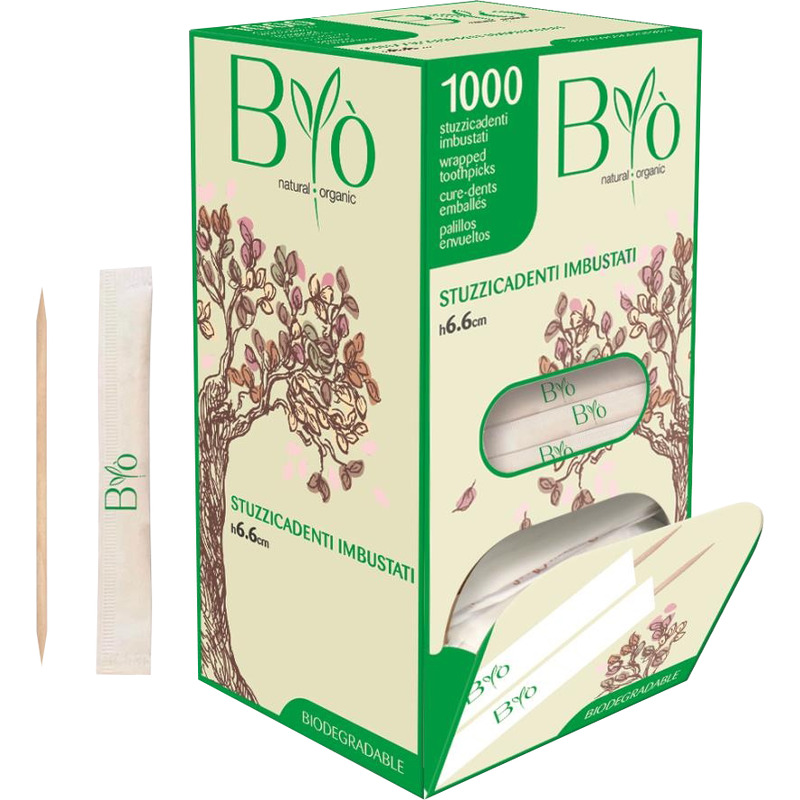 Stuzzicadenti in betulla imbustati singolarmente.